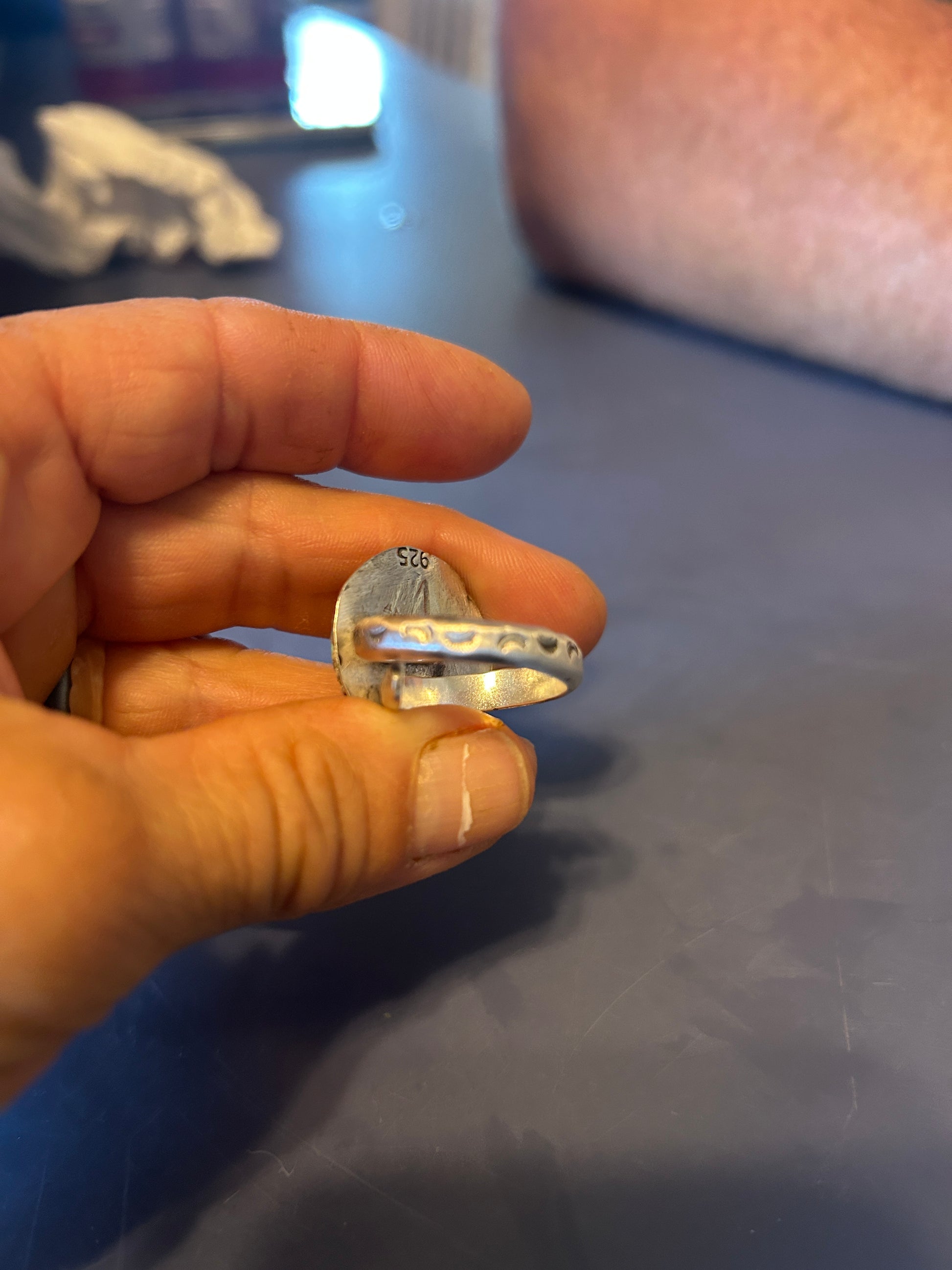 Sierra Nevada stone set in sterling silver with accents on an adjustable stamped band